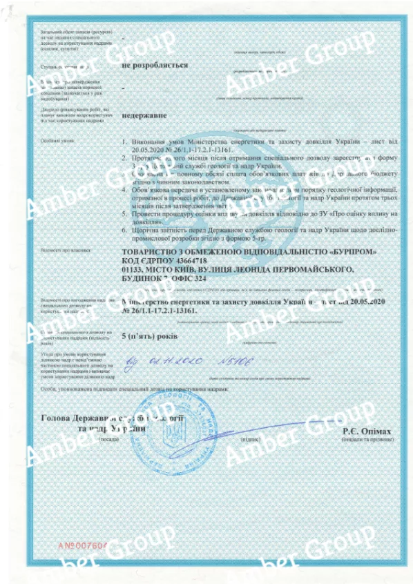 Компанія стала власником 2 спеціальних дозволів на користування надрами з правом видобутку бурштину.